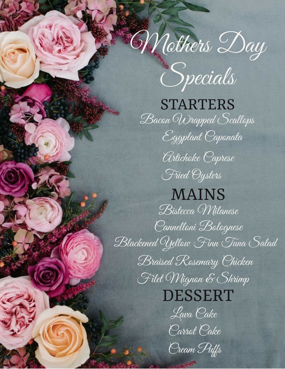EventsMother's DaySunday May 10thJoin us on Mother's Day and treat your mom to a delicious meal!11:00 AM - 09:30 PM